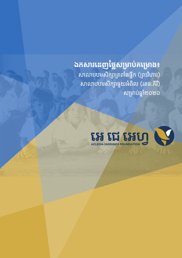 តាងនាមឱ្យអង្គការមូលនិធិអេស៊ីលីដា-ចារឌីនសម្រាប់ការអប់រំ (AJF) និងជាប្រធានអង្គការ AJF ខ្ញុំបាទសូមជម្រាបជូនលោកអ្នកថា នៅក្នុងឆ្នាំ២០២៣នេះ ក្រុមប្រឹក្សាភិបាលរបស់អង្គការ បានយល់ព្រមសាងសង់អគារបឋមសិក្សាថ្នីធ្វើអំពីថ្ម ចំនួនបីខ្នងបន្ថែមទៀត ដែលមួយខ្នងមានប្រាំបន្ទប់ មានទីតាំងនៅខេត្តព្រះវិហារ និងពីរខ្នងទៀតដែលមួយខ្នងមានប្រាំបន្ទប់ និងមួយខ្នងទៀតមានបីបន្ទប់នៅខេត្តឧត្តមានជ័យ...